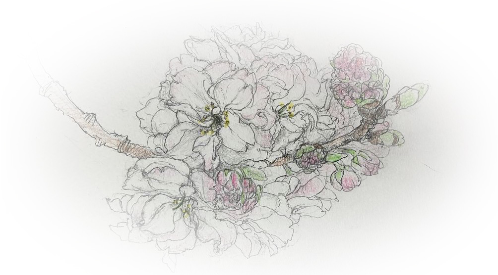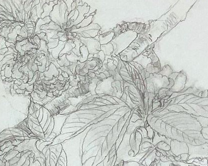 この圧倒的な臨場感を創り出す源は、精緻なスケッチにある。例えば、桜を描くとき、横尾はたくさんの花びらが咲き誇るなか、まず、一枚一枚と真摯に向き合う。そして、まるで花びらとの会話を楽しんでいるかのように、彼もしくは彼女の表情の違いを丁寧に細やかに写し取っていく。一枚一枚との交信が積み重ならなければ、横尾のスケッチは成立しない。膨大な時間と労力、とくに精神力を要する作業である。しかし、現場でのその交流がなければ、“そこに息づくもの”を捉えることはできないのである。